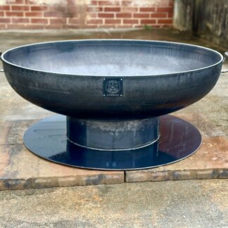 $675.00All Fire pits come with a 46” standard poker! Actual Dimensions 98lbs 30" x 30" x 22" (approximate finished height) 15" deep bowl Fire pits ship on a 40lb pallet - We Generally ship out within 3-5 business days! This handcrafted 30 Inch Decorative hemisphere Fire Pit sits approximately 22” off the ground. This pit is all welded; it has re-purposed handrail parts for the base and handles, has a 1⁄2” drain hole to keep water out and comes with a free handcrafted 46” Fire Poker. This Fire Pit is designed to easily service 2-10 people at any gathering. All of our fire pits are made using high quality carbon steel. Carbon steel is designed to oxidize and change colors over time. You can see a chart of the color shifts here, https://ssfirepits.com/faq/. All fire pits will take on their own character and your fire pit may come with a patina already started. Over time they will darken up, you can see some customer submitted photos of fire pits that have stood the test of time in our customer photo gallery, https://ssfirepits.com/gallery/ Don't Forget the Snuffer lids, they are super important and will make your life easy! https://ssfirepits.com/product/30-handcrafted-snuffer-lid/Add to cart -