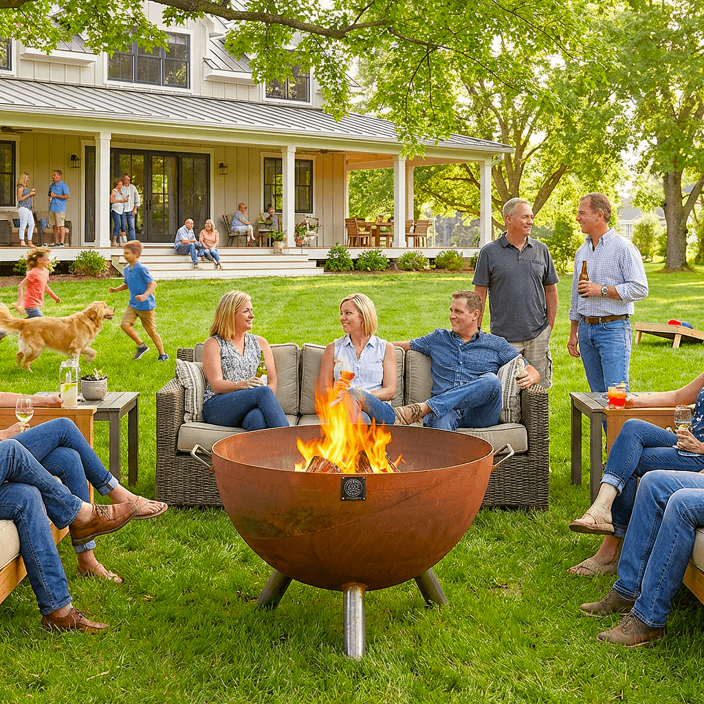 It’s one of our tallest pits at more than 25 inches above the ground. The pit holds a large volume of wood with a half-inch drainage hole at the base to remove any rainwater between uses. Invite your loved ones over for s’mores and hot dogs.